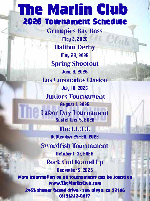 The Marlin Club tournament season is packed with action, competition, and unforgettable days on the water. From spring kickoffs to premier offshore challenges, our annual schedule gives anglers the chance to test their skills, chase big catches, and compete alongside some of San Diego’s most passionate fishermen. Whether you’re a seasoned competitor or looking to jump into your first event, our tournaments deliver excitement, camaraderie, and the thrill of the sport all year long. All of our tournaments are open to the public, so grab your friends and join us!